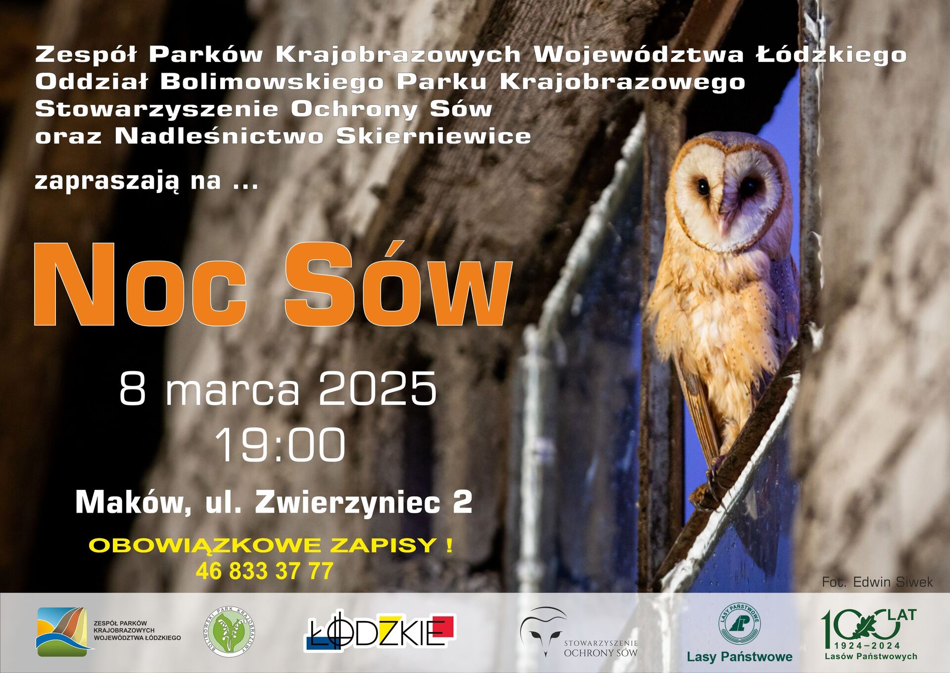 Zespół Parków Krajobrazowych Województwa Łódzkiego – Oddział Bolimowskiego Parku Krajobrazowego, Stowarzyszenie Ochrony Sów oraz Nadleśnictwo Skierniewice zapraszają 8 marca 2025 roku o godzinie 19:00 na „Noc sów” w Makowie, podczas której pasjonaci przyrody będą mieli okazję by zgłębić swoją wiedzę o tych tajemniczych i fascynujących ptakach.
