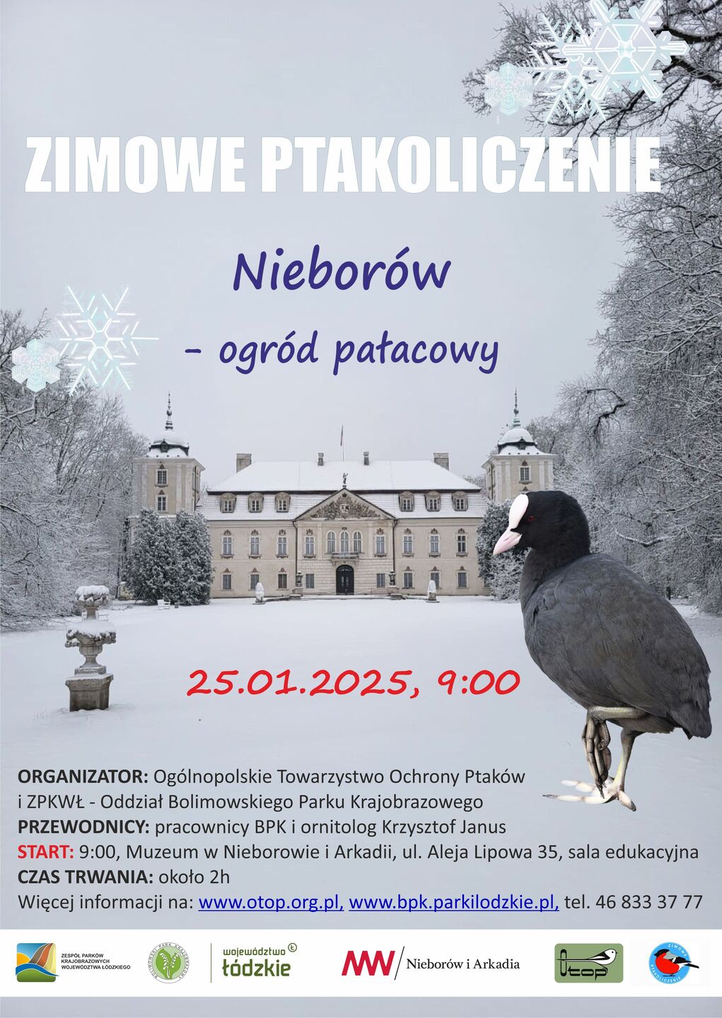 W sobotę 25 stycznia 2025 roku na terenie Muzeum w Nieborowie i Arkadii odbyło się Zimowe Ptakoliczenie – ogólnopolska akcja zliczania ptaków zimą koordynowana przez Ogólnopolskie Towarzystwo Ochrony Ptaków.